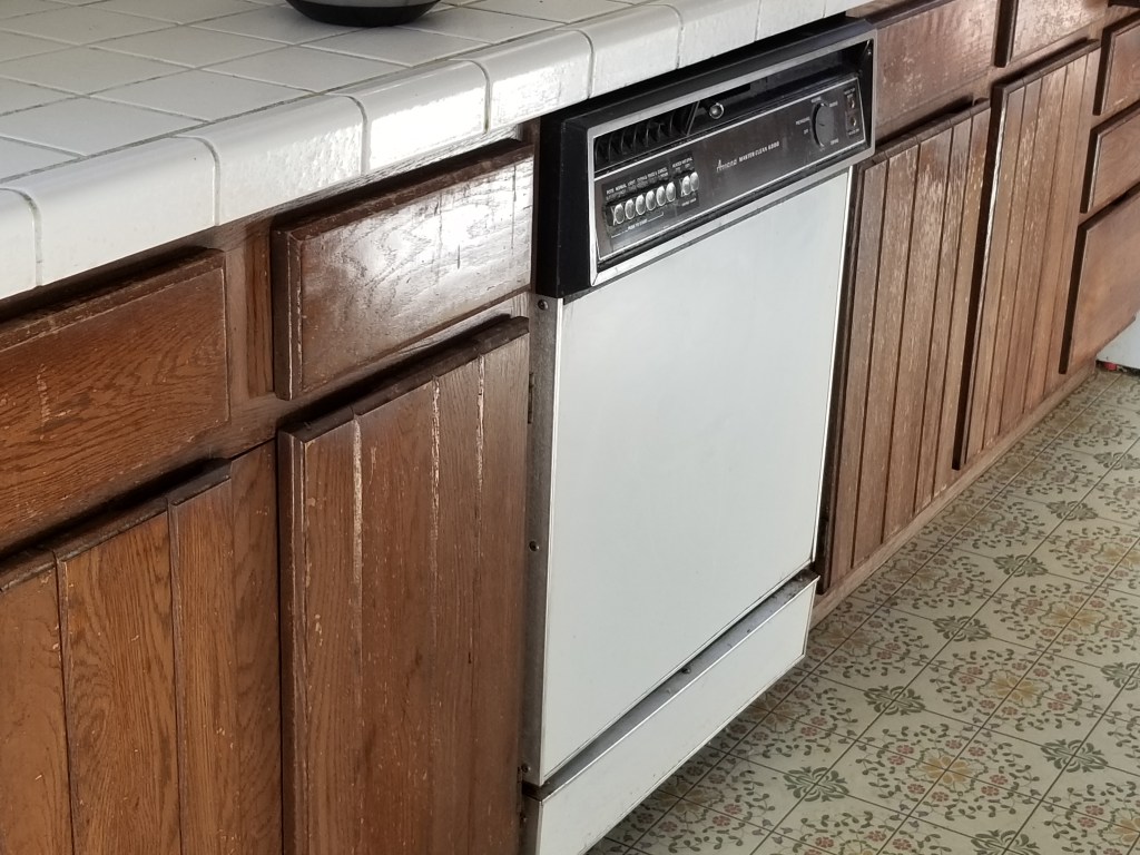 Visualize this before picture: Old 1950s linoleum. Really old scuffed baseboards. Boring Swiss coffee paint throughout. Everything shabby. Worn out blinds. Dishwasher in avocado color and didn’t work. It smelled moldy and was so very ugly. The bathroom was corroded and oh, so dated.